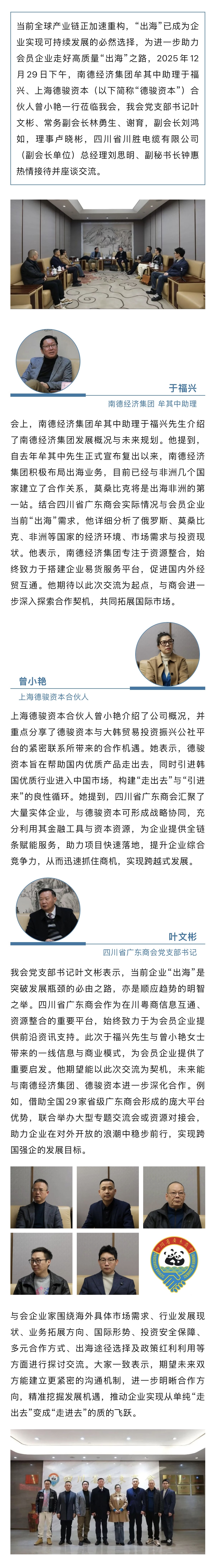 共话企业出海多样化途径|南德经济集团、上海德骏资本一行莅临我会座谈交流员会四川分会